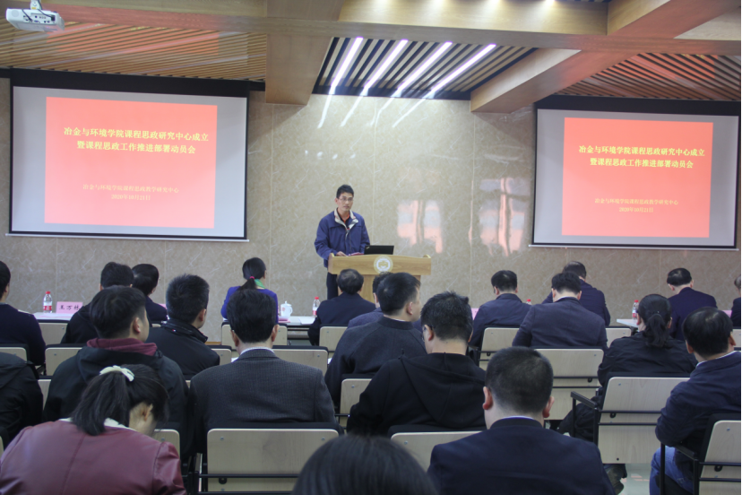 为深入学习贯彻落实习近平新时代中国特色社会主义思想和全国教育大会精神,进一步落实立德树人的根本任务,全面推进爱情岛 的课程思政工作,10月21日下午3点,爱情岛 课程思政研究中心成立暨课程思政工作推进部署动员会在金贵楼420隆重召开。本科生院何军院长、教师教学发展中心金一粟主任、本科教学督导专家彭立敏教授和李昆副教授,以及国家级精品在线开放课堂主持人刘卫国教授出席会议,学院党委书记成琼文教授、院长柴立元院士及学院领导班子成员出席会议,学院教职工党员、一线教师、辅导员参会。会议由教学副院长杨建广教授主持。