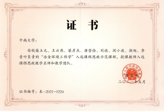 近年来,围绕“冶金环境工程学”课程建设与人才培养总体目标,柴立元院士团队系统推进课程思政建设,组建了一支结构合理与素质过硬的教学队伍,拥有院士1人、国家级系列人才4人,湖南省党支部书记“双带头人”标兵1人;顶层设计课程思政教学,主编《冶金环境工程学》特色教材,编写《Arsenic Pollution Control in Nonferrous Metallurgy》《现代有色冶金环境工程》《有色冶金与环境保护》等10部参考教材/著作;在教学过程中,注重将技术推广应用案例中所蕴含的德育和思政元素融入课程教学,提升课程思政的实践效果,锤炼学生攻坚克难的品质,增强解决复杂工程问题的能力。