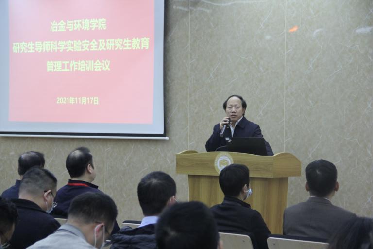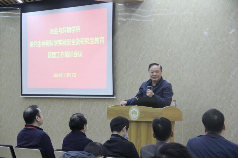11月17日下午,学院在金贵楼四楼报告厅隆重召开2021年研究生导师会议,开展科学实验安全及研究生教育管理工作培训。院长柴立元院士,党委书记成琼文,党委副书记张凯,副院长赖延清、陈爱良、杨建广出席,会议由闵小波副院长主持。近90名研究生导师以及研究生教育管理干事参加了本次会议。