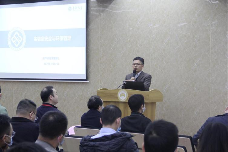 赖延清副院长介绍了学校实验室安全与环保管理现状、实验室安全环保制度体系、新出台的实验室安全环保管理文件,通报了实验室现场典型隐患及近年来学校发生的实验室安全事故,并对实验室安全检查中各实验室存在的安全隐患进行提醒,切实做好实验室安全工作,避免实验室安全事故的发生。