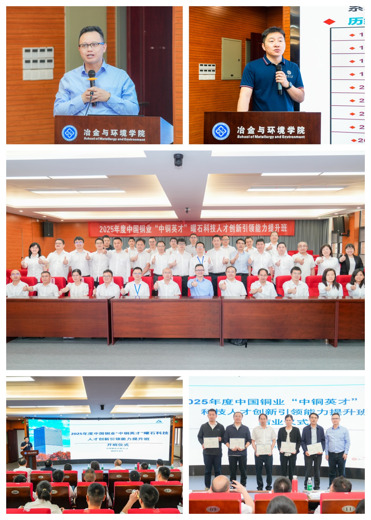 承办的2025年度中国铜业“中铜英才”曜石科技人才创新引领能力提升班在潇湘校区金贵楼成功举行。本次研修汇聚了来自中国铜业集团的36名国务院特殊津贴专家、集团首席科学家、省部级科技领军人才及特级研究员等高层次科技人才,通过高端课程与标杆企业参访相结合的培养模式,助力企业高层次人才创新能力提升。