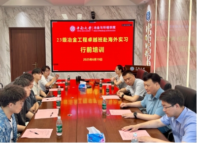 6月19日,学院召开2023级冶金工程卓越班赴印度尼西亚实习项目行前培训会,就境外手续办理、跨文化适应、应急处置等方面开展了培训。学院党委书记成琼文、副书记朱忠平、校国合处副处长陈强、格林美公司副总经理许鹏云、学院副院长王亲猛出席,赴印尼实习学生及指导教师参加培训。