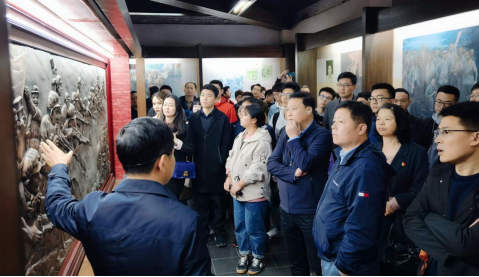 17日下午,师生们怀着崇敬的心情,驱车来到了位于湖南省双峰县城复兴街247号的蔡和森纪念馆。师生们向广场中央矗立着的“蔡和森同志光辉一家”群雕敬献花篮,凝视着肃穆可亲的烈士遗像,深深鞠躬表达敬意,在学院党委书记成琼文的带领下,师生党员们举起右拳,重温入党誓词。