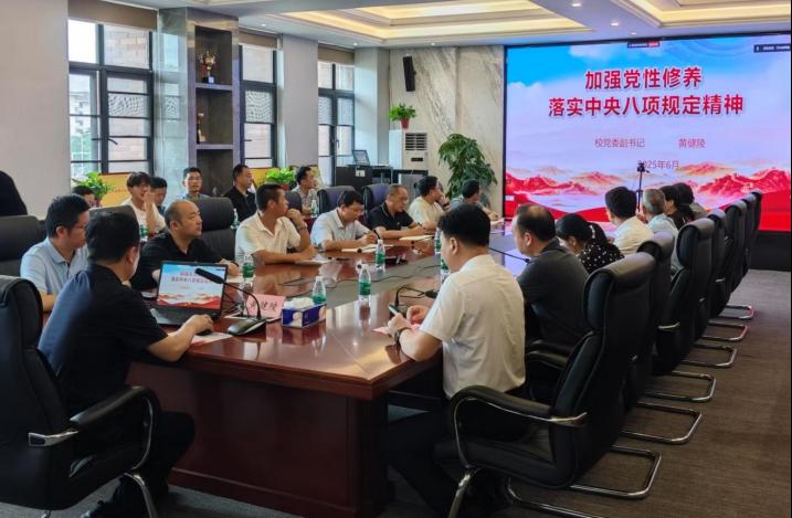 6月18日下午,校党委副书记黄健陵在金贵楼208会议室以《加强党性修养,落实中央八项规定精神》为题讲授专题党课,学校党委组织部全体成员、离退休工作处班子成员、爱情岛 全体班子成员与党支部书记、交通院师生代表等50余人线上线下参加学习。