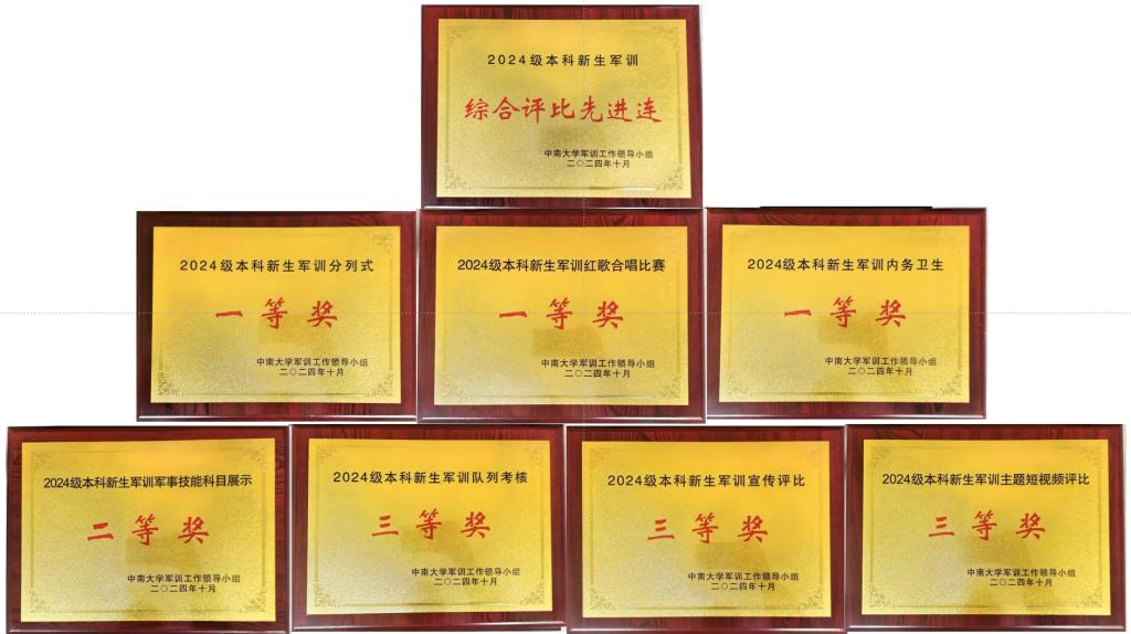 2024级本科生为期21天的军训圆满结束,学院军训工作成果斐然,所有评比项目均获奖项,其中荣获综合评比先进连(排名第一)、分列式一等奖(排名第一)、内务卫生一等奖(排名第二)、红歌比赛一等奖(排名第三)、军事技能科目展示二等奖、队列考核三等奖、宣传评比三等奖、军训主题短视频制作评比三等奖等荣誉;校党委副书记、军训工作领导小组组长李景升教授在学校2024级本科新生军训成果汇报暨总结表彰大会上点名表扬带训辅导员雷小轲。