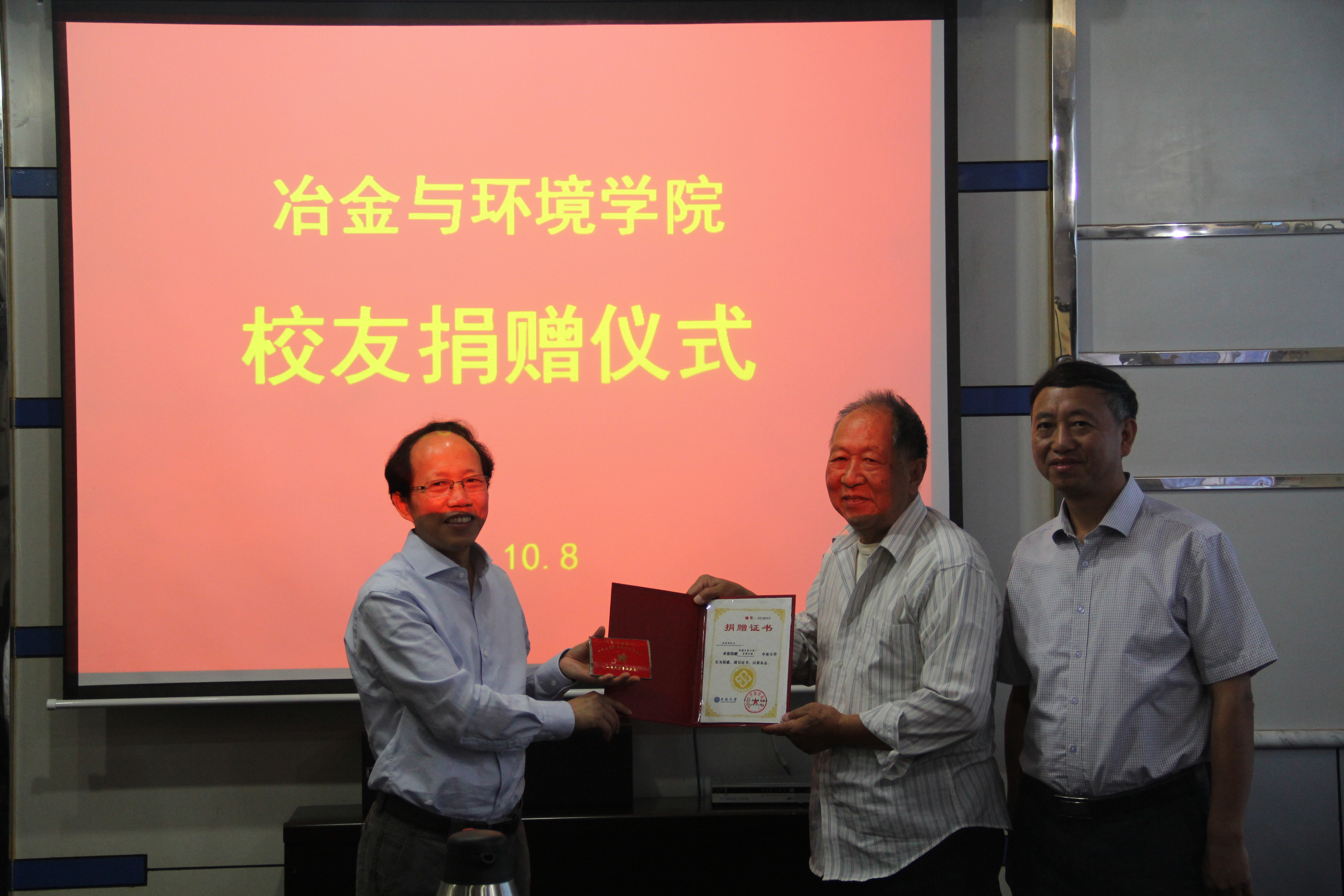 10月8日上午,校友捐赠仪式在爱情岛 冶金馆会议室举行。阜康冶炼厂原总工、爱情岛 校友陈廷扬向母校捐赠了珍贵藏品。爱情岛 校友叶绍球、梅炽、覃明干、爱情岛 发展与联络办公室主任张忠生、爱情岛 院领导柴立元、田庆华、赵中伟、王万林、赖延清、张凯等人出席了仪式。柴立元教授主持了仪式。