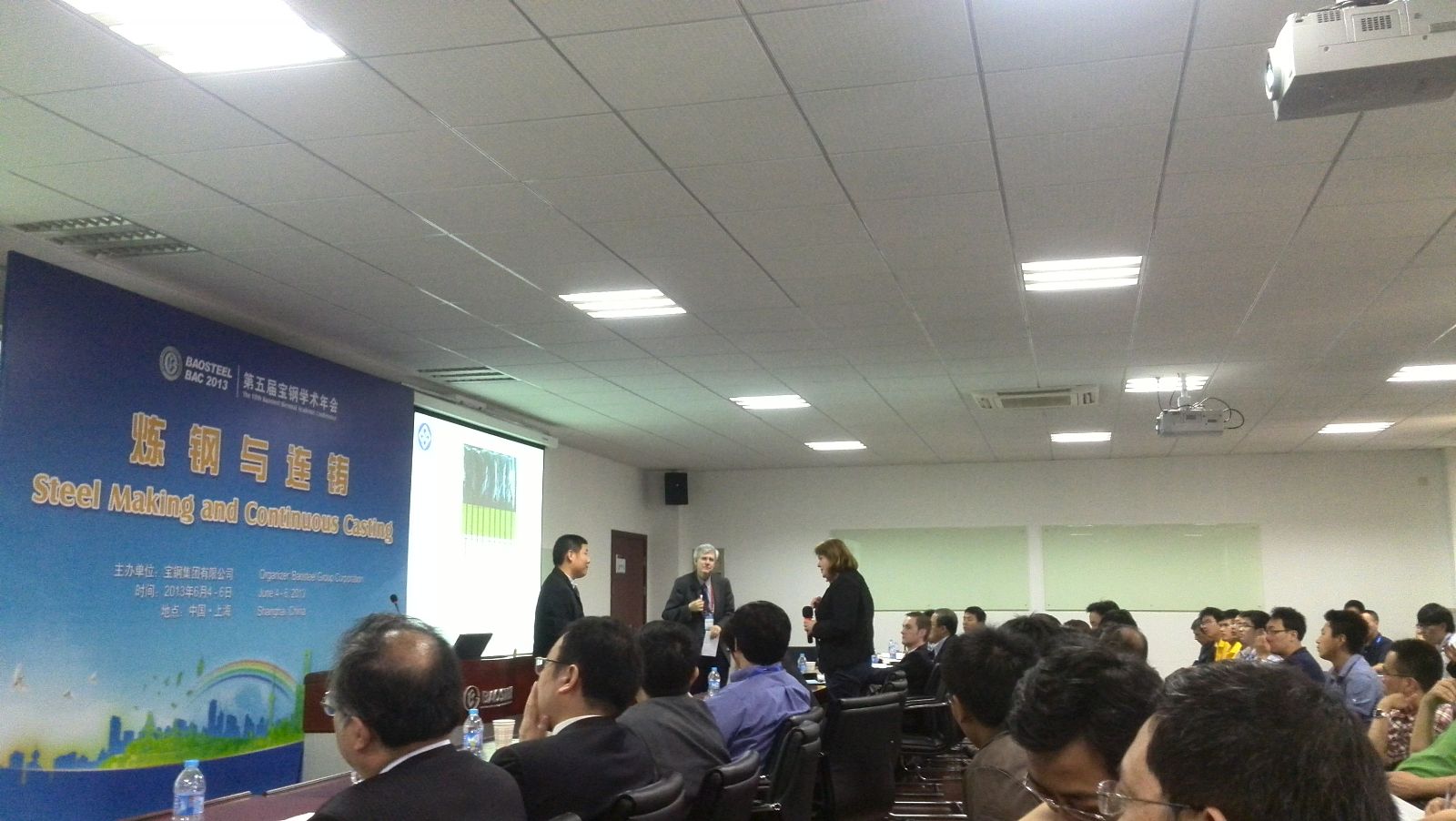 5日至6日,14个不同研究方向的分会场在宝钢研究院进行报告。由王万林教授及黄道远老师带领的爱情岛 冶金院钢铁所成员受邀进入炼钢及连铸分会场,会议由国际权威冶金专家美国伊利诺依理工学院副校长克拉姆及托马斯教授主持。王万林教授在会上作了题为“Study of Initial Solidification during Continuous Casting”的报告,报告内容详实新颖,激起与会者的浓厚兴趣。王万林教授还就与会代表关心的问题作深入探讨,台上台下互动交流,意犹未尽,气氛热烈。