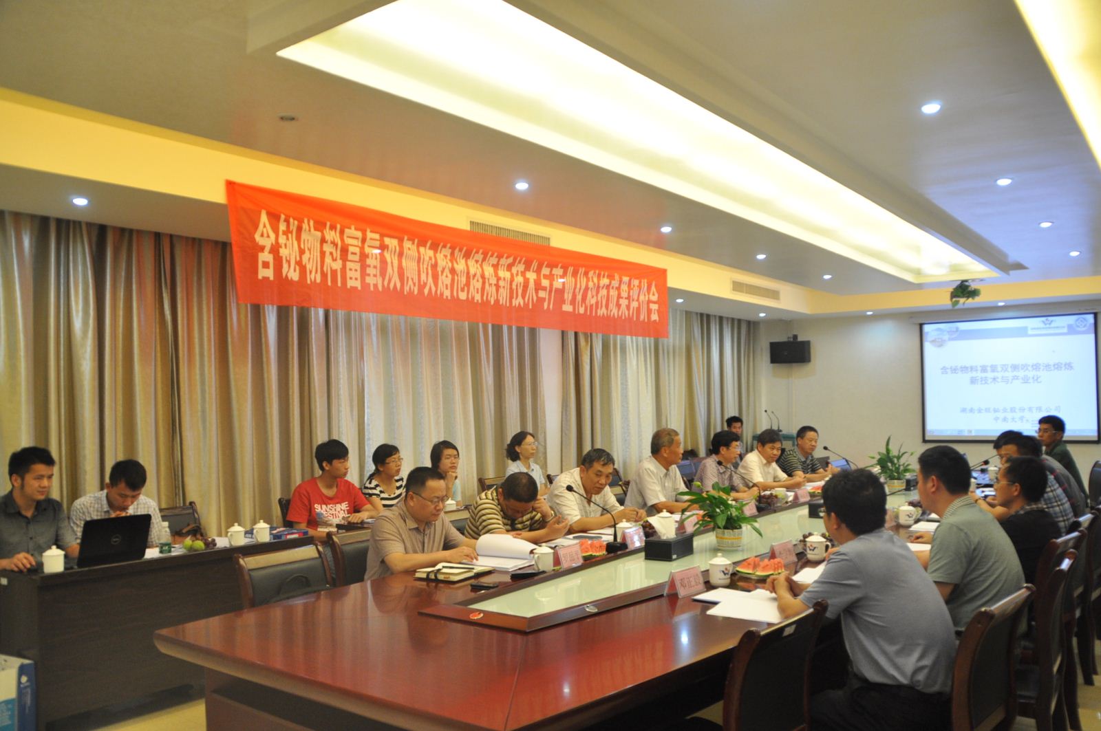以中国工程院院士张文海为主任委员,长沙有色冶金设计研究院周晓源教授为副主任委员的评议专家组听取了杨天足教授、宾万达教授及其项目组成员的项目成果汇报,审阅了项目评价材料,参观了生产现场。与会专家对项目工作进行了高度评价,一致认为项目开发的 “富氧双侧吹熔池熔炼技术达到了国际领先水平”。